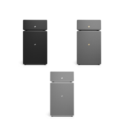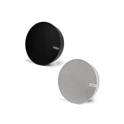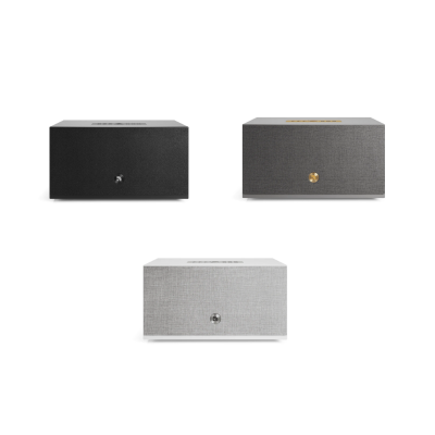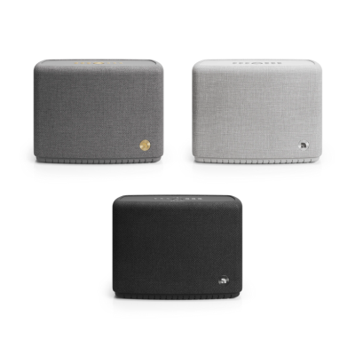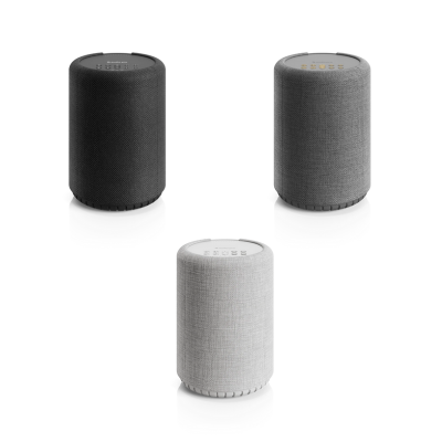 Multiroom speaker designed with a compact footprint and an elegant, rounded form that fits seamlessly into smaller spaces. Available in Black, Dark grey, Light grey